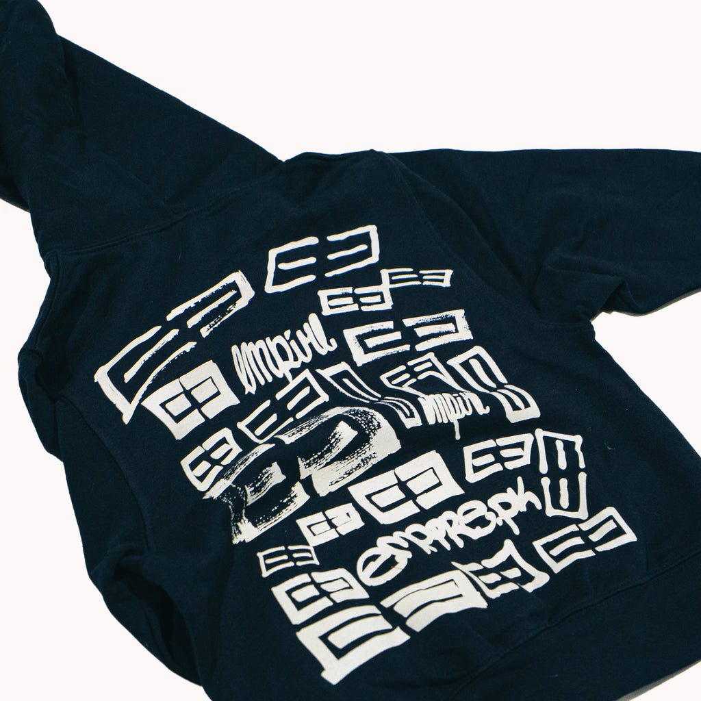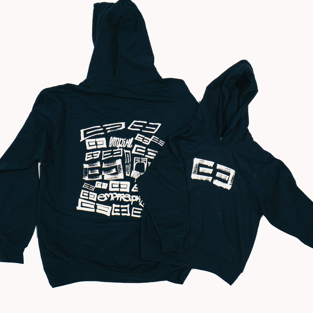 Our new hoodie featuring the Empire Parkour logo sketched on the front and all over the back
